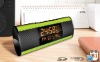 Digital portable mediaspeaker Mini digital media player withClock+Music Alarm+Thermometer+ Caleder Specification: Metal Case Large TN Display SD/MMC card slot Clock+Music Alarm+Thermometer+ Caleder Music File Format: MP3 FM Radio Line-in(connect to MP3, MP4, PC, Laptop, etc) 2pcs 3W Speakers Power Supply: Lithium rechargeable battery+ USB to PC Accessories: USB Cable + User’s Manual+ Line-in Cable+Adaptor(Optional)